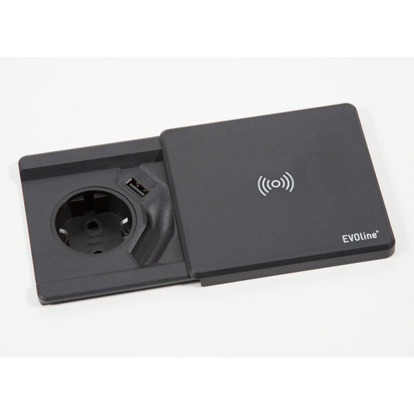 EVOline Square80 mit induktiver Ladefunktion, Steckdose+USB-Charger, schwarz
