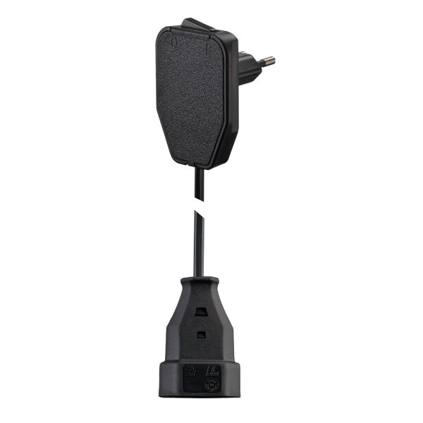 Euro-Flachstecker EuroPlug mit Schalter, ca. 5,0 m Zuleitung und Euro-Kupplung, schwarz