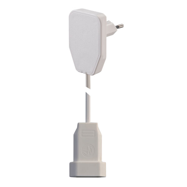 Euro-Flachstecker EuroPlug ohne Schalter, mit ca. 5,0 m Zuleitung und Euro-Kupplung, weiß
